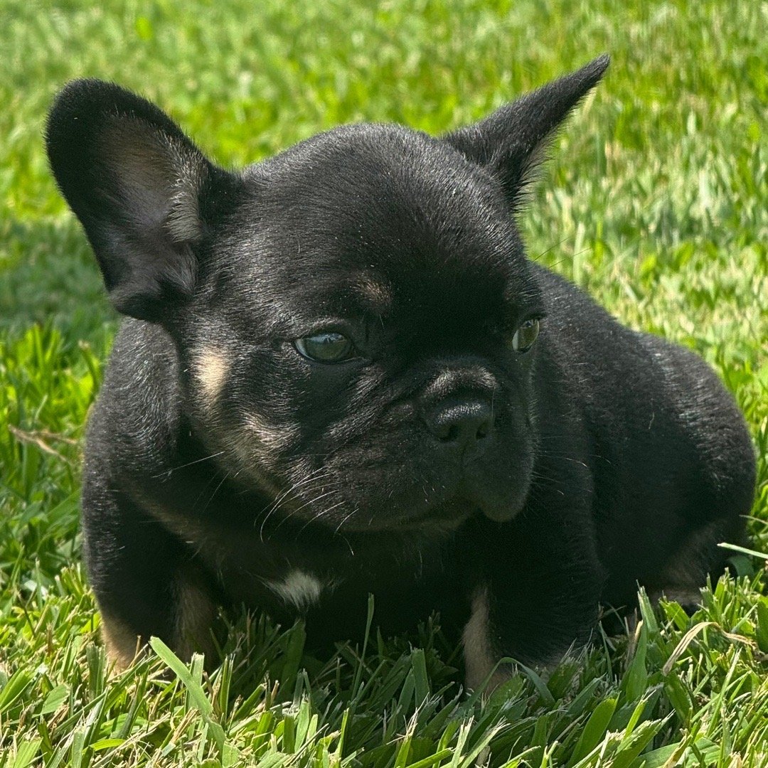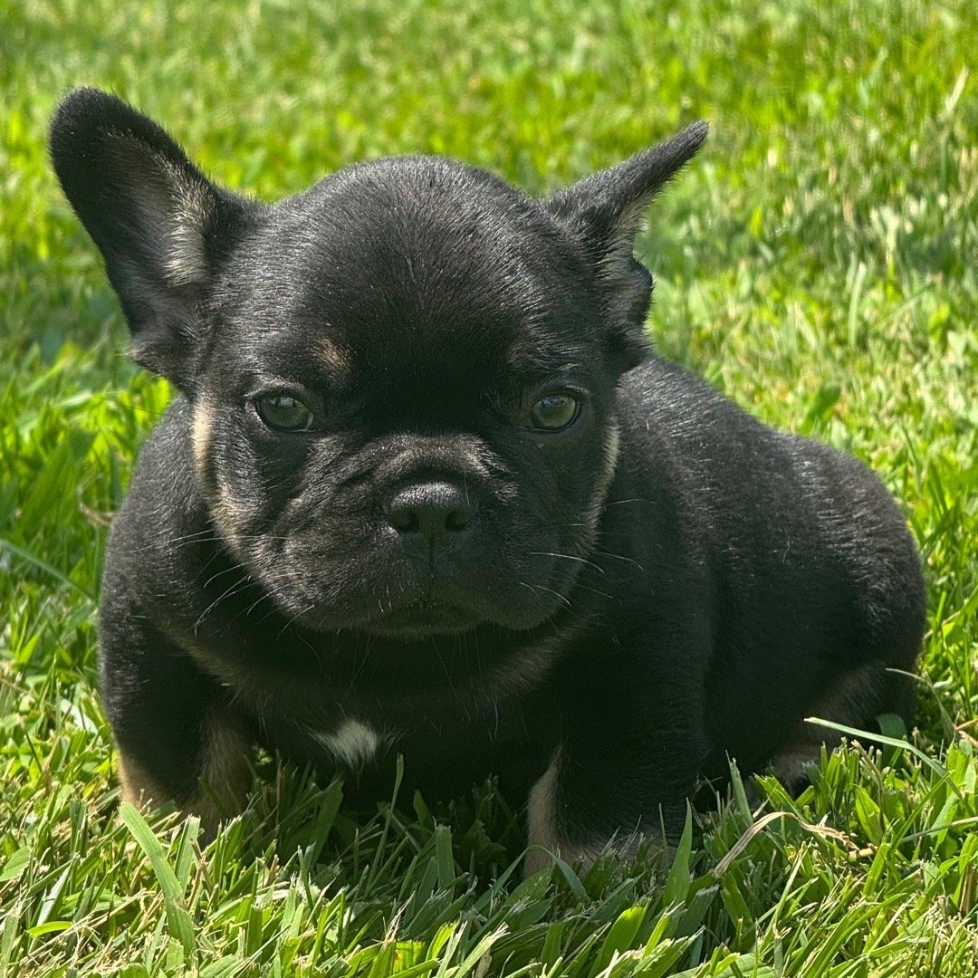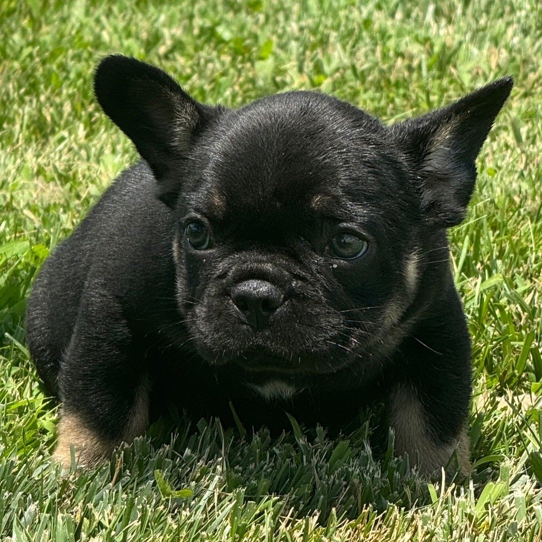 Hi, I’m Lucas! I’m a 9-week-old male French Bulldog with a beautiful black & tan coat, born on May 29, which makes me a Gemini pup. I am ready now to plan my trip to my forever family. Once I reach my adult size, I’m expected to weigh between 20–25 lbs. I’m AKC registered. My tail is ready to wag its way into your heart.